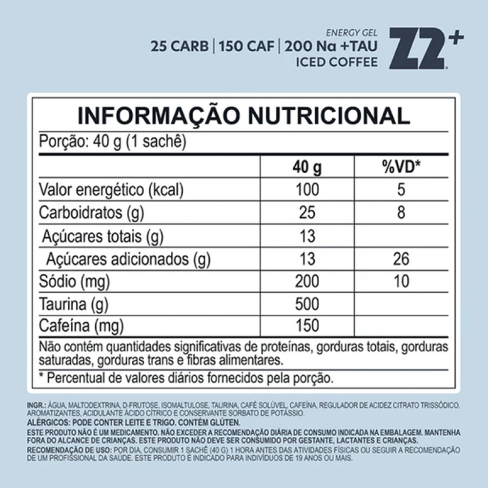 Consumir 1 sache (40g) 15 minutos antes do treino e/ou a cada 30-45 min durante o treino