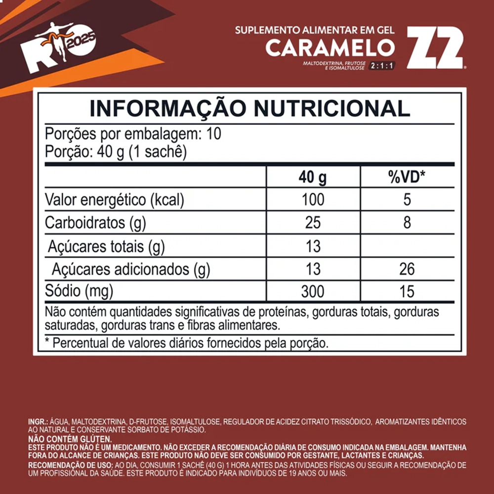 Indicado consumir 1 sache (40g) 15 minutos antes do treino e/ou a cada 30-45 min durante o treino